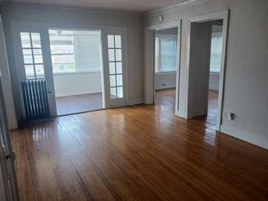 This spacious 1 bedroom 1 bathroom apartment is located on the corner of Main & 46th Street. There are hardwood floors throughout with walls painted in soft neutral tones for an open and clean feeling. High ceilings promote an open spacious feeling. Large windows on the exterior walls, many overlooking the Plaza, allow for ample natural lighting. Open to the kitchen, the dining room and living room are large and inviting. Each unit has a sunroom with wall to wall with windows that's perfect for a morning coffee to start your day! Stainless steel appliances and other modern upgrades make the kitchen welcoming.
