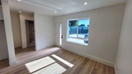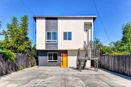 This downstairs 1 bed 1 bath apartment is a fully brand new construction! This home features new recessed lighting throughout, AC units in the living room and bedroom, and wood flooring throughout with tile in the bathroom. The kitchen has granite countertops, a wide sink, electric stove, refrigerator, microwave, and plenty of cabinet space! The hallway doubles as the laundry area and has hookups for a stacker washer/dryer. The bathroom has a new vanity, toilet, and walk-in shower.