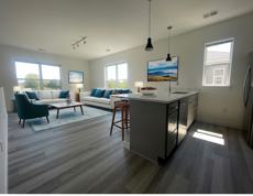 Abundant Natural Light: Extra windows flood the space with sunlight, enhancing the open kitchen and living room floor plan.