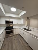 This beautifully remodeled first-floor 3 bedroom, 3 bath end-unit apartment is located in this centrally located apartment community in Glendale. The entry opens into a remodeled kitchen featuring brand-new cabinetry, quartz countertops, a stainless steel sink with a modern goose-neck faucet, appliances include stainless steel stove and microwave and dishwasher. A dedicated dining nook sits just off the kitchen, and an extended bar top offers additional seating and a natural connection to the living room. The living area is bright and open, enhanced by recessed lighting and premium vinyl plank flooring. The layout creates an easy, modern flow that's ideal for everyday living or casual entertaining. Fresh paint and updated lighting add to the home's crisp, updated feel. All three bedrooms are generously sized, and two feature private en-suite bathrooms. The primary bedroom includes access to a private balcony for outdoor relaxation. Each bathroom has been stylishly updated with new vanities, modern sinks and faucets, and sleek shower doors and each offers a tub/shower combination. The hallway offers excellent storage, with multiple built-in cabinets and closets for added convenience. Throughout the unit, you'll find brand-new vinyl plank flooring, fresh paint, updated lighting, mirrored closet doors in all bedrooms. Modern comforts include central air conditioning and heat. The building offers community amenities including an elevator, intercom access, a community laundry room, subterranean parking with two assigned spaces, and on-site manager. Positioned in a central Glendale location, the property offers quick access to the 134 and 2 freeways and is close to local dining, shops, schools, the post office, and major retail destinations like The Americana at Brand and the Glendale Galleria. This is a non-smoking unit. Sorry, no pets! Tenant to carry and maintain renter's insurance during tenancy. Must view property with property manager before applying.