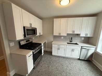 Fully remodeled 2BR/1BA with brand-new kitchen, bathroom, lighting, electrical, and plumbing! Features include white cabinets, quartz counters, new appliances, dishwasher, and in-unit laundry. Two large bedrooms with great closet space. Move-in ready and designed for modern living.