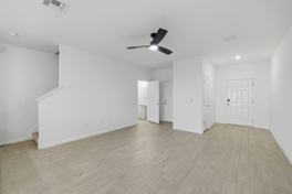 Move-in ready SE Ocala townhome featuring tile flooring downstairs, granite countertops, and shaker-style cabinets. The spacious primary suite offers a large walk-in closet, dual vanities, and a walk-in shower. Upstairs laundry includes washer and dryer for added convenience. Enjoy the screened lanai for fresh air and relaxation. Plus, a one-car garage completes this well-appointed home. Ready now!