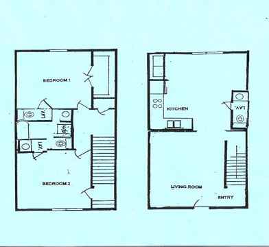 Two story townhome with 2 bedrooms, 1/2 bath downstairs, 1 1/2 baths upstairs, gas heat, central air, upstairs laundry area includes washer and dryer, kitchen includes appliances, large bedrooms, large closets, outdoor storage area on patio