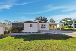 This light and bright home was remodeled in 2021 and features new vinyl siding, fresh landscaping, a covered carport, and a spacious wrap-around screened porch perfect for relaxing outdoors. Inside, enjoy a modern stainless-steel kitchen, calming blue-grey tones, stylish barn doors, and en-suite access from both bedrooms. The primary suite fits a king bed with ease, and the metal roof and new hot water heater add peace of mind.