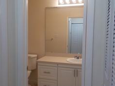 Original cabinets, 2018 white shaker vanities, ceramic tile