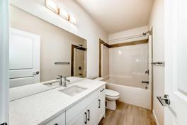 Welcome to this BRAND NEW, FULLY FINISHED LEGAL BASEMENT SUITE in the family-friendly community of Rangeview, Calgary’s only Garden-to-Table community. A thoughtfully developed home, 33B Bartlett Way SE, offers over 800+ square feet of living space, delivering both functional and stylish layout designed for today’s modern lifestyle, comfort and convenience. This basement level comes with its own SEPARATE SIDE ENTRANCE as well as SEPARATE STACKED LAUNDRY. This wonderful home features a well-equipped L-shaped kitchen WITH STAINLESS STEEL APPLIANCES, QUARTZ COUNTERTOPS & WHITE CABINETS. A cozy living room with PLENTY OF POT LIGHTS, a dining area, a spacious bedroom with large SUNSHINE WINDOWS and a FOUR-PIECE BATHROOM also with QUARTZ COUNTERS and a SOAKER TUB completes the basement. The awesome community of Rangeview offers a lifestyle unlike any other. Designed around the concept of community-based food living, residents enjoy access to shared garden plots, orchards, a central greenhouse, and seasonal farmers’ markets. With scenic pathways, parks, playgrounds, and a layout built for connection and sustainability, Rangeview encourages residents to grow, share, and build lasting relationships with their neighbors. Book your private showing today and see what makes this home, and Rangeview, truly special.