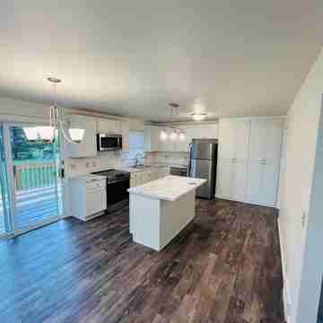 The spacious living room flows into the modern kitchen with access to a newly refinished deck and large private backyard. Additional features include a garage, in-unit washer and dryer, linen closet, and a finished basement with a large recreation room—perfect for entertaining or relaxing.