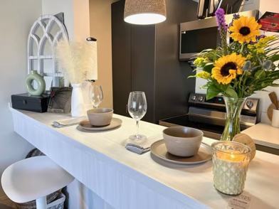 - Kitchens with oven (air fryer & dehydrator built-in), refrigerator & freezer with ice maker