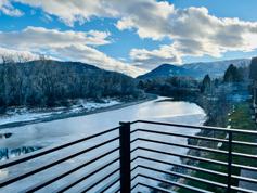 Luxury living at the River's Edge Residences! Immaculate long-term & unfurnished OR furnished apartment-homes ready for occupancy. Second Floor CORNER UNIT! Two BR/2 BA 1586 sq ft. + 209 sq ft deck overlooking the Yellowstone River! Available September 15th, 2025 for 12 month lease. This is not a vacation rental. NO PETS. Chef's kitchen w/stainless steel fridge, cooktop/oven, DW, microwave & high-end cabinetry & kitchen island & Thor wine fridge. Separate laundry room w/ W/D. Master BR has private living rm w/ 42" HDTV, tiled shower & free-standing soaker tub & walk-in closet. Secured building w/ off-street parking. Unit has AC, sliding patio doors to a custom deck overlooking the YS River. Enjoy the River's Edge amenities including a courtyard complete with BBQ and seating for outdoor dining for tenants. Two blocks from Sacajawea Park & the Civic Center, 30 min. to Bozeman, 45 min to YSNP. Includes internet; Tenant pays electric.