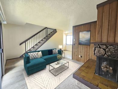 This cozy 1 Bed / 1 Bath unit is located right next to the Spokane River, close to Spokane Community College and Gonzaga University. Comes with brand new carpet. The kitchen includes wooden cabinets, tons of counter space and a variety of appliances. Connected to the kitchen would be the dining area and a pantry closet with built-in shelves. The living room includes a wooden accent wall and a decorative fireplace. Upstairs you have your bedroom and bathroom. The bedroom is large in size, with tons of sunlight coming from the big window with a sliding door that leads to a private balcony, and two spacious closets with shelving. The bathroom includes a wooden vanity that corresponds with the rest of the units style. Unit also includes a private patio downstairs as well. Plenty of first come, first serve parking spots. Laundry facility available on-site.