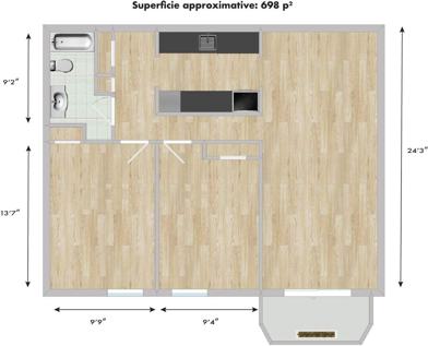 Appartement - **206** - Montréal - **2** Chambre(s) à Coucher - **1** Salle(s) de Bain - **790** PC - **$1,500 /mo**