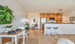 Top floor unit with unobstructed San Francisco views! Outdoor balcony for indoor/outdoor dining or cup of coffee. Light filled western facing living area. Updated unit with newer engineered flooring and solid wood kitchen cabinets. Stone countertops and stainless-steel appliances. Check out the inviting European styled frosted glass Barn door entry to the bedroom retreat. Don't miss the spectacular full city lights view from the bedroom, living room and balcony. A must see custom painted bathroom detail and luxury shower tub combo. New carpet in the lobby and fresh new look with security features for the common area including Amazon lockers, exterior cameras and building Ring doorbell. Secure underground parking and eco-friendly EV charging. Landscaped front with drought tolerant grasses. Walking distance to Whole Foods, Lake Merrit and BART. Affordable urban living at its finest.
