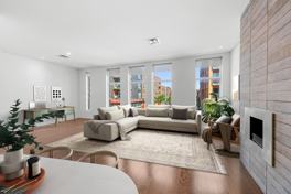This bright and modern apartment features an open-concept living area, large windows, and contemporary finishes. The kitchen, complete with a breakfast bar and stainless steel appliances, opens onto a spacious living and dining area. A fireplace in the living room adds a cozy touch to warm up those chilly winter days! The bedrooms are comfortable, and the bathroom boasts a sleek glass shower. Ideally located in a desirable neighborhood, close to shops, restaurants, services, and public transportation.