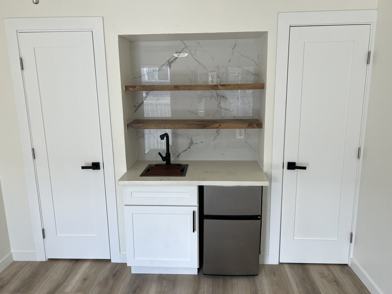 Newly remodeled bachelor unit available. This unit is private and quiet, located in the rear of the property. Everything is brand new and the space is maximized. This is a bachelor unit which does not include a full kitchen. There is no stove in the apartment. 50 % of Utilities paid by the owner. Street parking only.