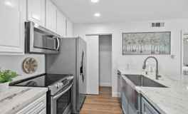 Stylish single level upstairs unit offers the perfect blend of comfort and sophistication. Beautifully designed upgraded kitchen complete with large pennisula island & wrap around custom cabinetry, contemporary counters, large stainless sink and appliances, recessed lighting. Two toned cabinetry offers a chic vibe. Walk-in pantry with stacked washer/dryer. Open concept floor plan is bright & airy with beautiful updated flooring throughout. Elegant dining space & large contemporary living area flow seamlessly for entertaining. Beautifully designed top floor unit with upgraded kitchen complete with large pennisula island and two toned cabinetry elevate the everyday cooking experience. Elegant dining space and large contemporary living area flow seamlessly for easy entertaining and open to a large outdoor deck balcony. Perfect for BBQing. The primary bedroom is spacious and elegant and features a walk-in closet, a seperate hall closet and modern ceiling fan. Ensuite bath with modern fixtures. The bedroom also opens to the private outdoor deck area with walk in storage closet. A great space for enjoying the California outdoor lifestyle. Close to Rimgate Park, hiking trails and wonderful shopping and restaurants.