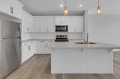 Nestled in the beautiful brand-new community of Ambleton, this gorgeous home offers the perfect balance of modern living and natural beauty. Designed with walkability and connection in mind, Ambleton features extensive pathways, parks, playgrounds, and green spaces—ideal for active lifestyles and families. With easy access to Stoney Trail and 14th Street NW, nearby transit, and everyday amenities including shopping, dining, and services in surrounding communities such as Evanston and Creekside, you’ll love calling this neighbourhood home. Step inside this 4-bedroom, 2.5-bath main floor unit and discover a bright, modern space featuring luxury vinyl plank flooring, pot lights, high ceilings, and large windows that flood the home with natural light. The corner kitchen is a standout, complete with upgraded stainless steel appliances, quartz countertops, a massive island, and a spacious walk-in pantry. A convenient main-floor bedroom provides flexibility for guests, a home office, or additional family space. Upstairs, you will find soft carpet throughout, along with more large windows and a spacious bonus room perfect for movie nights or relaxing evenings. The primary bedroom offers a large closet and a stylish ensuite with double sinks and modern finishes. For added convenience, the laundry room is located just steps from the primary bedroom. Don’t miss this incredible opportunity—submit your application today! Items to Note: - Available Immediately - Pet Friendly - Max of 2 pets with pet fee - Utilities: Monthly Flat Rate of $350.00 - No Smoking or Cannabis Allowed Period - Credit & Background Check Required - Online Application