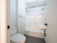 The unit comes equipped with a fridge and stove, providing the essentials for city living.