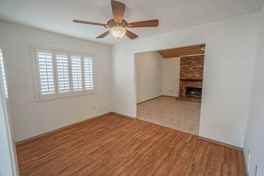 Interior Highlights: Enter a roomy open floor plan with elegant plantation shutters, contemporary recessed lighting, and towering vaulted ceilings. The house has a combination of attractive laminate flooring and sturdy ceramic tiles. Unwind in the separate family room, which is centered around a warm fireplace and is maintained year-round by ceiling fans, central air conditioning, and heat.