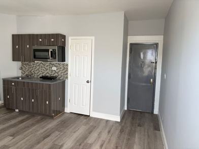 The apartment offers a bright, open layout with a functional design, providing a clean and comfortable living space ideal for a single occupant or commuter.