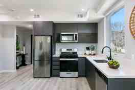 New high-end appliances (refrigerator, stove/oven, dishwasher, microwave)