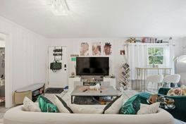 The living area is spacious and versatile, allowing for a variety of furniture arrangements to suit your lifestyle. The kitchen is equipped with essential appliances and ample cabinetry, making gourmet meal preparation a breeze. The bathroom is well-appointed with classic fixtures and a clean design.