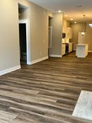 Step inside to find luxury vinyl plank flooring throughout, spacious closets, and a warm, inviting built-in fireplace that anchors the open living area. The gourmet kitchen is a standout, featuring stainless steel appliances, under-cabinet lighting, a large center island perfect for entertaining, and modern finishes that blend style with function.