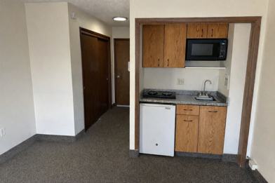 This charming micro studio offers comfortable, efficient living in a quiet and welcoming community. The apartment features a convenient kitchenette equipped with a two-burner cooktop, built-in microwave, and mini refrigerator, perfect for simple meals and everyday convenience.