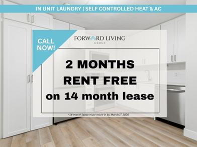 Hydro, Water and Parking extra. TWO MONTHS RENT FREE on a 14-month lease. Must move in by March 1st 2026.
