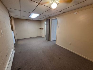 This three bedroom, one bath apartment is located in the heart of Bemidji and is a basement unit. There are stairs heading down to the apartment.