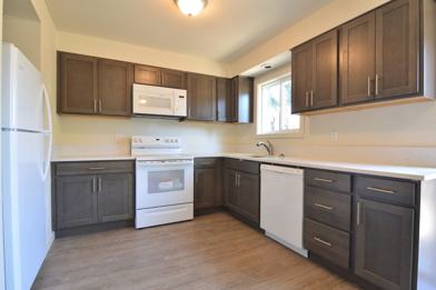 These two-level homes feature vinyl flooring, large windows for abundant natural light, and a bright, open living area. The kitchen offers ample cabinet space, included appliances (oven/stove, refrigerator, and dishwasher), and convenient washer/dryer hookups. A half bath is located on the main level for added functionality.