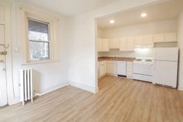 Recently renovated; open dining room / kitchen area. Separate living room opens up to a private front patio with garden view. Two bedrooms, with extra room for a home office. Rear porch opens up to a large, shared yard. Elegant, remodeled bathroom with modern ceramic tile shower & tub. Laminate wood floors throughout. Plenty of windows allow for excellent natural light. Cat friendly apartment. Laundry on site. Street parking. 24-hour emergency maintenance.