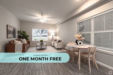 A bright, welcoming living area with large windows that fill the space with natural light and create a cozy, airy atmosphere