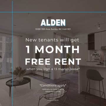Located at 15188 19th Ave, the Alden offers one of South Surrey’s most desirable rental locations. With a Walk Score of 81, residents enjoy shops, grocery stores, cafes, and restaurants just minutes away. White Rock Beach is only a 6-minute drive, perfect for weekend getaways or seaside walks. The neighbourhood is safe, vibrant, and well-connected by transit—ideal for professionals, families, and anyone who values convenience and lifestyle.