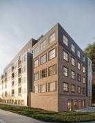 A generous one-bedroom with a spacious living and dining area that anchors the home. The bedroom is set back from the main living space for a real sense of privacy, with a large walk-in closet. Additional linen storage and in-unit laundry are neatly grouped together in the center of the plan. GE stainless steel appliances throughout, including a WiFi enabled electric range, over-the-range microwave, Energy Star refrigerator with ice maker, dishwasher, and stacked washer and dryer. Layout features a large open-plan, full-size bedroom with walk-in closet, linen storage, in-unit laundry, efficient all-electric heating and cooling, and sound-deadening construction for quieter living.