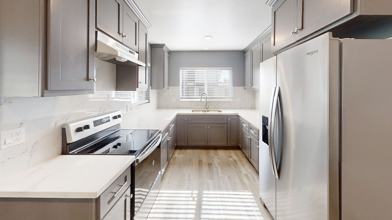 Functional kitchen with stove and refrigerator included