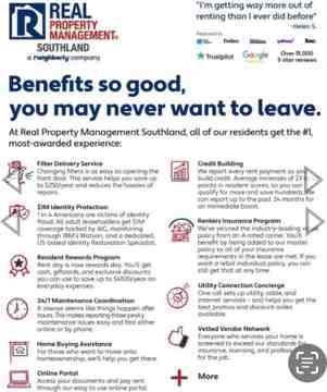 All Real Property Management Southland residents are enrolled in the Resident Benefits Package (RBP) for $40.95/month which includes liability insurance, credit building to help boost the resident’s credit score with timely rent payments, up to $1M Identity Theft Protection, HVAC air filter delivery (for applicable properties), move-in concierge service making utility connection and home service setup a breeze during your move-in, our best-in-class resident rewards program, and much more! More details upon application.