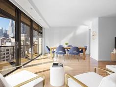 The E-line at 100 United Nations Plaza on the 20th floor is coveted for its open northern and southern panoramas. From the sun-drenched great room enjoy entertaining and dining with open views of the iconic southern skyline. The apartment?s generously-proportioned living space is nearly 30-feet long, boasts floor-to-ceiling windows with sliding doors, and provides seating arrangement flexibility with room for dining for 10 or more. The renovated windowed kitchen has a western exposure, granite countertops and backsplash, custom wood cabinets, recessed lighting, and stainless-steel appliances from Sub Zero, Bosch, Miele, and GE.