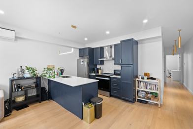Recent construction in the Plateau Mont-Royal!!! Unit 4313: 2 bedroom apartment located on the 2nd floor. Kitchen open to living areas. Trendy look with black and wood color accents, as well as a black quartz countertop. Lots of storage cabinets in the kitchen. The two bedrooms have a wardrobe.