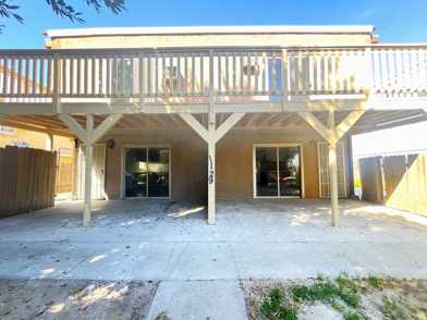 This updated two-story home features an open layout with natural light, neutral flooring, and a clean, modern kitchen with grey cabinets, marble countertops, and a small island. The home includes an oven/stove and fridge. Upstairs details spacious bedrooms, and a walk-in closet. The balcony is not functional and is for aesthetic purposes ONLY. The doors to access the balcony will be locked and will not be accessible. There’s also extra storage and a front patio.