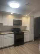 This will be a beautiful apartment with LVT wood-look flooring throughout the entire unit. This is a great apartment for those that like to grill outdoors, as the apartment opens to a large grassy area that is fenced in. The kitchen has oak cabinets, silver mist appliances, and a built-in microwave. There are recessed lights and pendant lighting over the beautiful granite counters. In the bathroom, you will have a high gloss beige ceramic tile on the tub walls and floor with white fixtures. The 15-foot long patio doors will be covered with vertical blinds and the large bedroom window will be covered with a cordless blind.