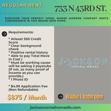 Discover comfort and convenience in this inviting studio apartment at 733 N 43rd St., perfectly situated in the heart of Haverford North, West Philly. Priced at just $895 per month, this well-maintained unit offers an ideal blend of affordability and style. Step inside to find beautiful hardwood floors that add warmth and character, complemented by classic white appliances that create a clean, modern feel. The space is thoughtfully designed, offering a nice-sized layout that allows you to comfortably relax, work, and entertain. Large windows invite in natural light, enhancing the welcoming atmosphere throughout the apartment. Located in a vibrant and accessible neighborhood, you'll enjoy proximity to local shops, public transportation, and community amenities. Whether you're a student, professional, or simply looking for a cozy place to call home, this studio delivers both value and charm in a prime West Philadelphia location. $895/ Month $1,890 to move in Requirements: * Atleast 550 Credit Score * Clear background check * Positive rental history * Able to pay Total Move In Cost * Must be working cause will be asking 4 paystubs (If not, as many proof of income as you can provide.) * 1 Photo ID * $4.99 Application Fee (Non Refundable)