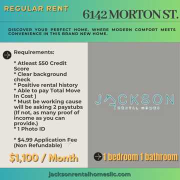Welcome to 6142 Morton St., 2nd Floor—a charming and spacious 1-bedroom, 1-bathroom apartment located in East Germantown, North Philadelphia. This well-maintained unit offers a comfortable layout with beautiful hardwood floors that add warmth and character throughout. The living space is open and inviting, perfect for relaxing after a long day or hosting a cozy night in. The bedroom is generously sized, providing plenty of room for your essentials, while the kitchen comes equipped with clean white appliances for a bright and functional feel. The tiled bathroom features a full tub, offering both convenience and comfort. Situated on the second floor, this apartment provides added privacy and a peaceful atmosphere. Conveniently located just a few blocks from Roosevelt Elementary School and Lotus Academy, this home is in a great spot for accessibility. At $1,100 per month, it's a wonderful place to call home. $1,100/ Month Requirements: * At least 550 Credit Score * Clear background check * Positive rental history * Able to pay Total Move In Cost * Must be working cause will be asking 4 or 2 paystubs (If not, as many proof of income as you can provide.) * 1 Photo ID * $4.99 Application Fee (Non Refundable)