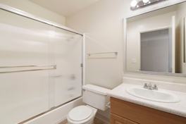 • Well-appointed bath(s) with vanity, brushed nickel plumbing fixtures and easy-care tub/shower surround