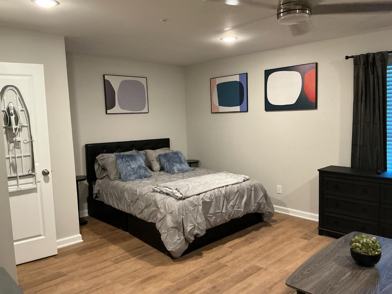 Keyless entry, remote-access for climate-control, as well as for the lighting and ceiling fans, flat-screen televisions on full motion wall mounts, nickel-brushed appliances, units are fully equipped with silverware, dinnerware, cookware and cutlery, Keurig coffee maker w/coffee pods, hide-away garbage bins, cleaning supplies, fully dressed bedding, beautifully crafted cabinetry, granite countertops, stylish glass shower doors with subway tile, double and triple mirrored medicine cabinets, innovative sliding barn-style doors, hair dryers, cleaning supplies, on-site automated laundry (app controlled) and more!