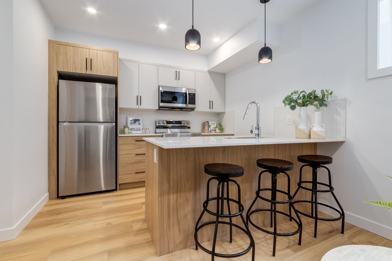 Experience elevated urban living at Loop 33 by OldStreet, where modern, minimalist, and timeless design meets everyday comfort. These townhome rentals in Calgary feature clean lines, bright open layouts, and large windows that welcome an abundance of natural light. Contemporary finishes and modern appliances create stylish, functional spaces designed for today’s lifestyles.