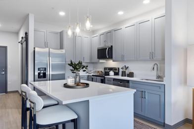 The View at Rock Run Collection is now open in Joliet, IL! Located within the visionary 310-acre Rock Run Collection, our new luxury community offers studio, one-bedroom, one-bedroom plus den, and two-bedroom apartments designed for a variety of lifestyles. Apartment homes feature quartz countertops, stainless-steel Whirlpool appliances, wood-style vinyl plank flooring, walk-in closets, and covered balconies, with flexible layouts ideal for working from home. Residents will enjoy a 7,638-square-foot clubhouse with a game lounge, 24/7 fitness center, co-working suites, resort-style pool, dog park, grilling stations, and a fireside lounge. Private garages, EV charging, and package lockers add everyday convenience. Situated in Joliet’s newest destination for shopping, dining, and entertainment, with access to I-55 and I-80, The View effortlessly connects you to the greater Chicagoland area and major employers. Contact us today to learn more and be among the first to live at The View.