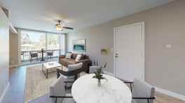 Our apartments showcase stainless steel appliances including built-in microwaves, elegant quartz countertops, and custom cabinetry with soft-close drawers. Wood-style flooring, designer paint, and oversized kitchen sinks deliver both style and function. Enjoy year-round comfort with central A/C and ceiling fans, plus your private patio perfect for relaxing.