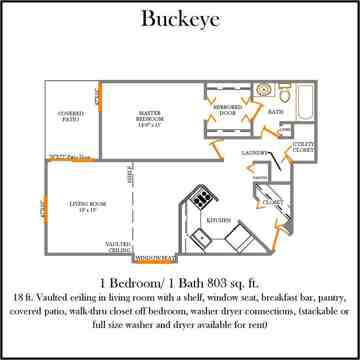 Our most unique floorplan! Huge entry closet, pantry, breakfast bar, window seat, 14 ft. vaulted ceiling, large picture window, 19'x13' living room, patio door leads to covered patio, linen closet in bathroom, walk through closets lead to a bedroom that accommodates a king size bed!