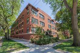 Blending styles from the Prairie School and the Arts and Crafts Movement, this corner building features a warm, red brick facade that moves upward to highlight expansive windows capped off by projected eaves. The extended exterior makes a bold statement, with windows accentuated by creamy limestone trim and ornamental details. Just steps from bustling 53rd Street, the property is centrally located, within minutes of everything in Hyde Park.
