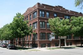 Abundant light streams through the expansive windows framed by geometric brick and limestone detailing on this richly colored masonry facade, reflecting the clean lines of the Arts and Crafts Movement. Alternating recessed brick provides a sense of movement, directing the eye toward the Mission roofline. Situated on a quiet corner a few blocks from historic Washington Park, this property provides a quiet retreat close to plenty of outdoor activities.